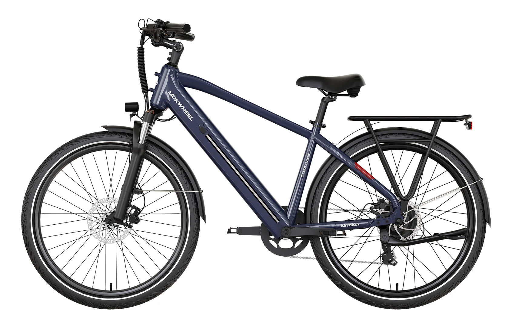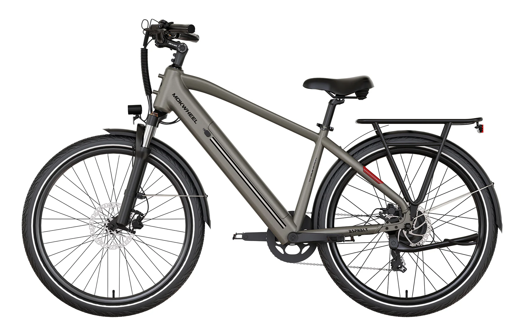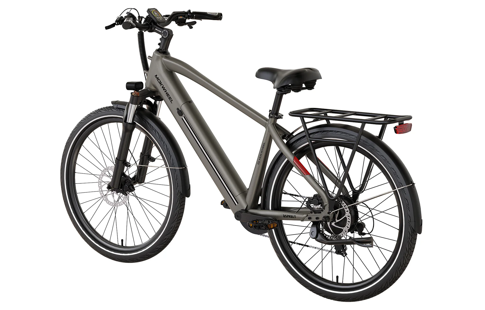 Mokwheel Asphalt is an electric bike tailored for urban commuting. The torque/cadence sensor provides effective power output, enabling you to reach faster speeds and longer distances. Great range in a sleek urban commuting frame.