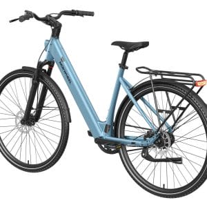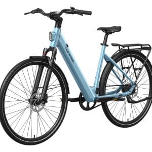 FLINT ST PRO is a step-through lightweight commuter eBike launched by Mokwheel, designed to deliver a quieter and more comfortable riding experience for daily city use. Its 450W peak motor and 35Nm of torque, combined with the Gates belt-drive single-speed system, provide stable and quiet power output. The thru-axle air fork offers smooth shock absorption on paved roads and light gravel, while the adjustable inward handlebar makes the riding posture more natural and relaxed. With a hydraulic brake system and a 300-lb load capacity, FLINT ST PRO maintains reliable control for commuting, errands, and light weekend trips, presenting a lighter and more composed way of city riding.